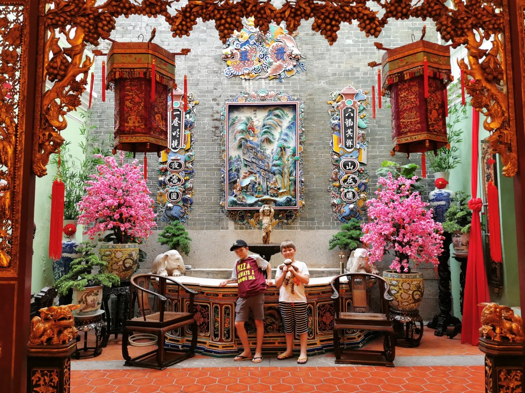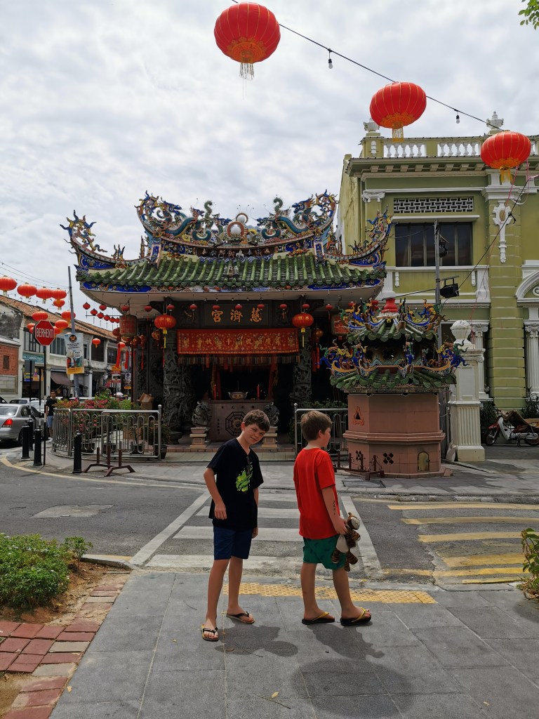 We landed on Pulau Penang (Penang Island) and made an entrance, as the boys rested against a metal railing only to find that it wasn’t fixed and both they and the railing went clattering to the floor in the middle of the arrivals hall. I lifted everyone and everything back to an upright position and off we tottered to get in our Grab car which was to take us to George Town and our hotel.