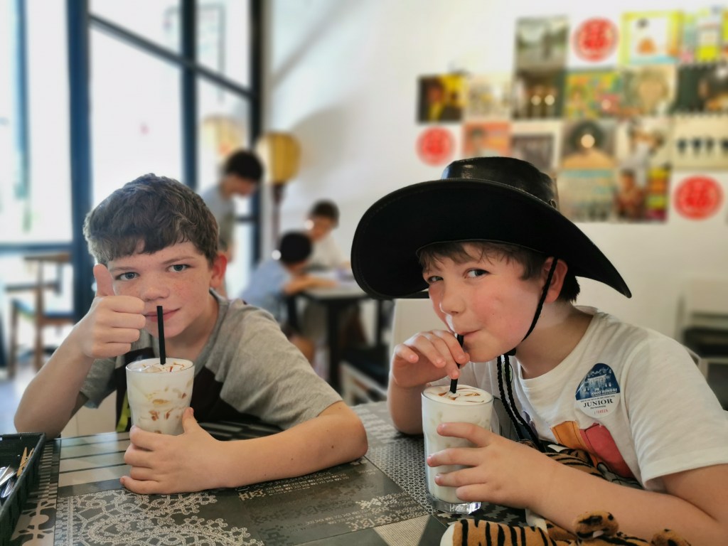 The Mugshot Cafe and The Rainforest Bakery staff are awesome (waving and calling to the boys as we passed a couple of times later in our stay), the bagels and Chelsea Buns are delicious and the place is very cool too.