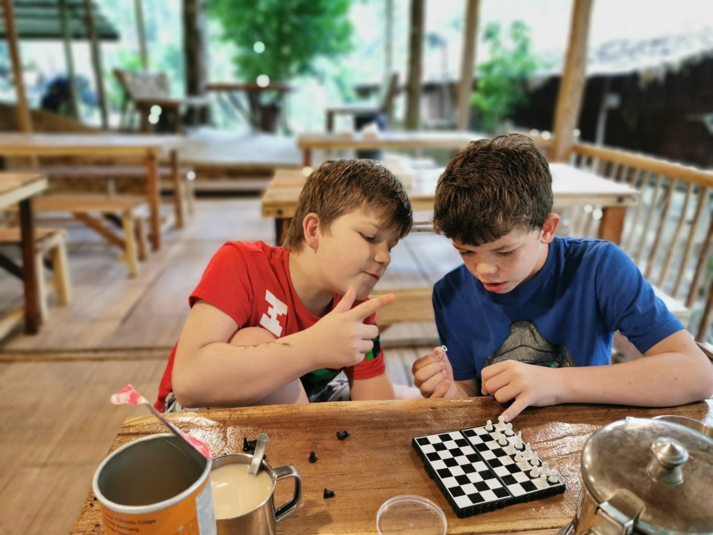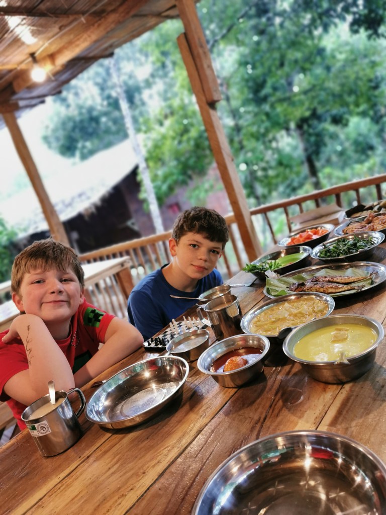 The boys were so excited to sleep under a mosquito net that, after having a chat and sharing some wine with a Swiss/American couple and her mother, we had a very early night or at least early to bed. The boys slept peacefully to the sound of cicadas and the nearby waterfall whereas I, without WiFi or phone signal was unable to keep track of things back at home so enjoyed reminiscing with photos and videos instead.