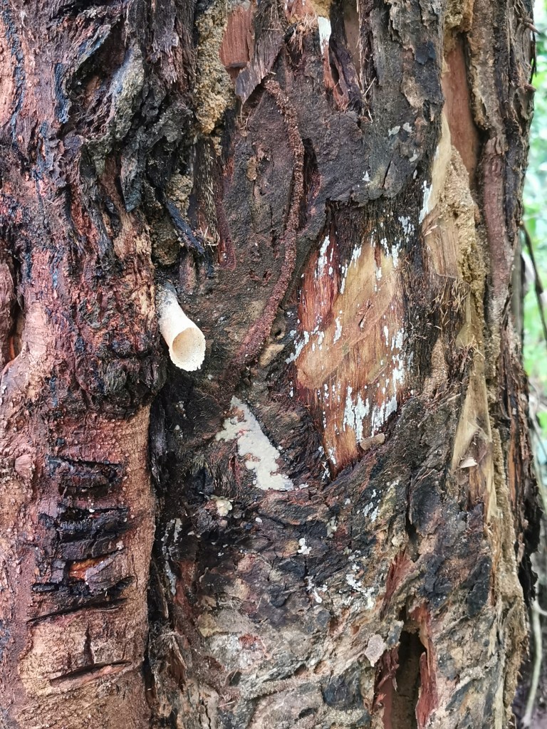 With our wooden staff in hand we hiked, sweated, stumbled and slipped our way through dense rainforest for 5 hours whilst our father and son guides silently and nimbly navigated their way along familiar routes, sometimes leaving markings on the trees for others from their village who regularly hunt, trap and forage in these forests.