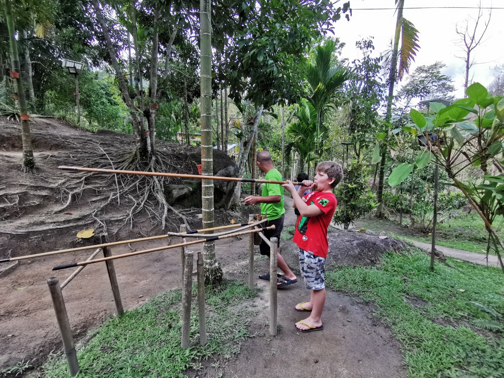 On our return to camp we went for a swim in the stream and a paddle on the rafts before being shown how the Orang Asli use blow pipes and traps for hunting.