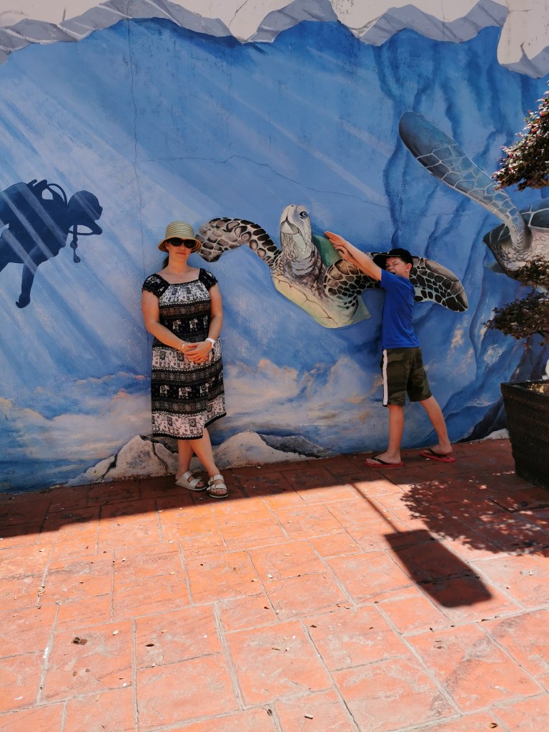 So what to do now? Call taxi again, go back to hotel and try to get a room before everyone else around us snaps them up! But alas there was no credit left on my phone and not a taxi to be seen. Very little English is spoken here and no one I asked could help. So we walked back to the hotel in about 35°C and carrying all our kit. That was a fun morning. There was absolutely no refusal to walk another step. No sitting down and refusing to move another metre. No tears. No Alfie slipping on his backside on the freshly washed tiles outside a bakery. Thankfully it was his pack that saved him from cracking his head. Anyway, we made it. The guy on the hotel reception was promoted to full weight to&&er when he refused to let us check back in until 12 noon. We could have our same room but despite my protestations that house keeping didn’t need to change the sheets, he just pointed to the sign that said check in 12 noon. It was 11am so we sat there in the tiny reception area with all our bags, waited and watched him check in 2 other sets of guests without question. When the clock struck 12 we were given our room key. We dropped our bags and went for an explore of the town and the beach.
