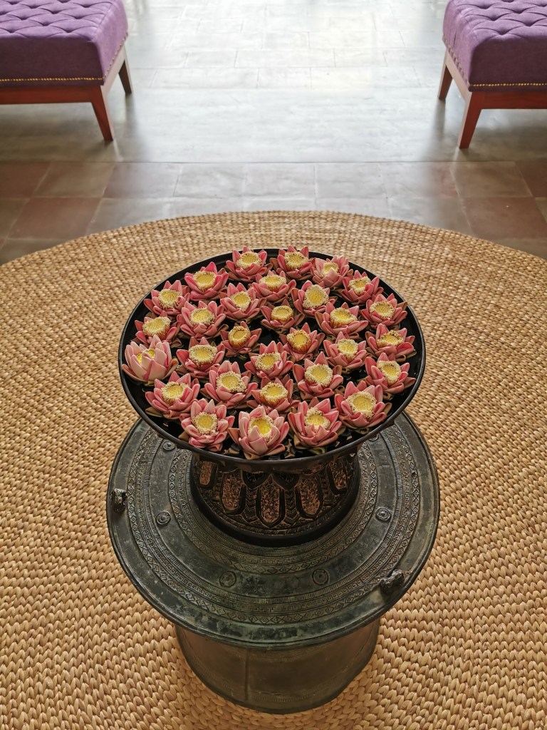 As we entered the hotel we were met with a beautiful display of lotus flowers. The flower petals are folded and the display refreshed by the hotel staff every few days. Every Cambodian we met seemed to have so many traditional skills. I loved that so many of these traditional crafts and skills are still used in everyday life, keeping their culture and traditions alive. The hotel was incredible. Our ‘room’ wasn’t a room but an apartment with a huge open plan lounging, dining and kitchen area, large bathroom and bedroom along with balconies on all sides. It was huge! We settled in, enjoyed the fruit bowl of fresh mango, lychee and mini bananas then had a mid morning swim before going to explore this vibrant little city. The hotel staff were really helpful in giving us advice about attractions, customs and security. The location was on a bustling street in a neighbourhood within 10 mins walk of the city centre. Siem Reap city is tightly packed, full of temples, palaces, restaurants, parks, hotels, markets, museums, shops and tuk tuks. The sights, smells and sounds are an assault on the senses but in the best way possible. The dusty air seems always to be full of the smell of insence and we grew so fond of it.