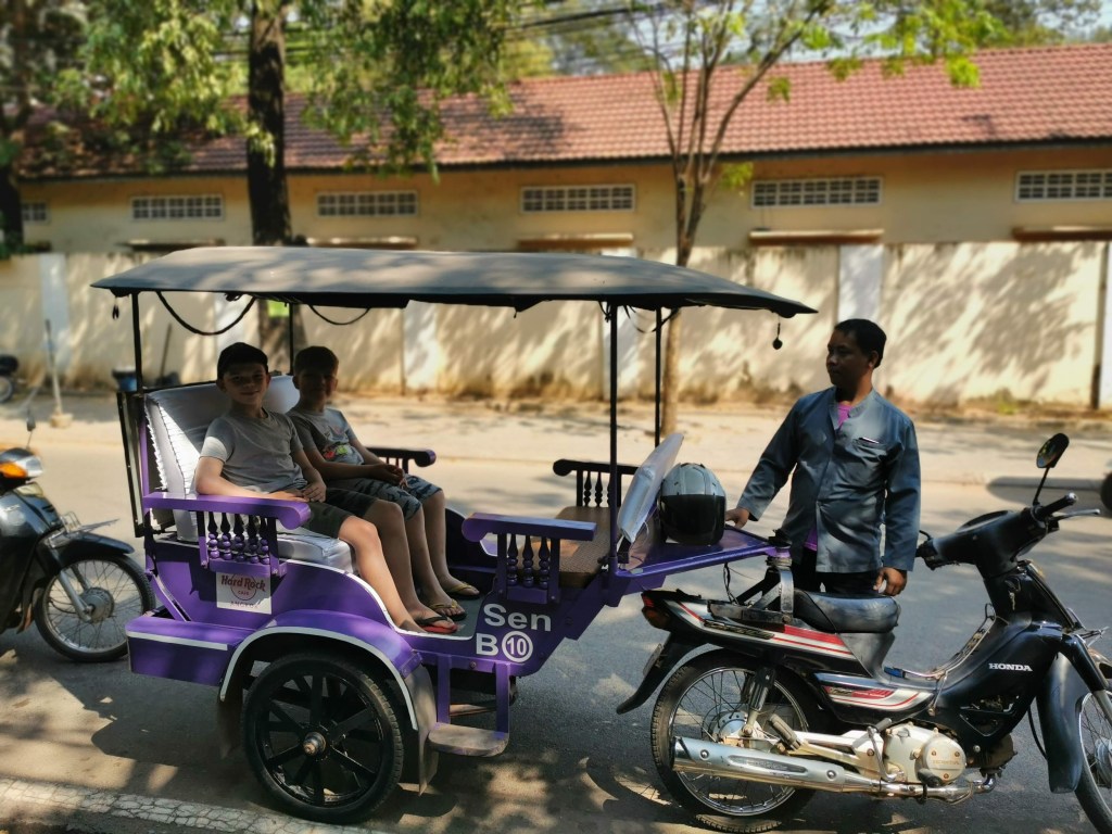 We landed in Siem Reap early morning and our first impressions were of a hazy heat with the sun rising behind the points of the airport that is built in the traditional Khmer style architecture. It was small, relatively new and rather quiet. No doubt due to the rising pandemic in China which continues to have a huge impact on the tourism of the area. You need a visa to enter Cambodia and attempting to be organised, I’d arranged E-Visas whilst in the UK. You also need to complete immigration paperwork. This was all new to me so I diligently spent some time on the flight preparing everything to make our entry smooth and problem free…..