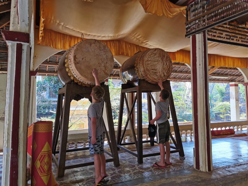 So from here we were semi abducted by another tuk tuk driver desperate for some business. He wouldn’t take no for an answer and I guess at that point I was too polite to keep turning him down. With so few tourists everyone was desperate for customers. He tool us to another couple of temples, showed us where the monks slept, some of the artifacts and antiques kept by the temples and our trip finished by him getting told off by said monks for encouraging the boys to play the temple drums. Eek!